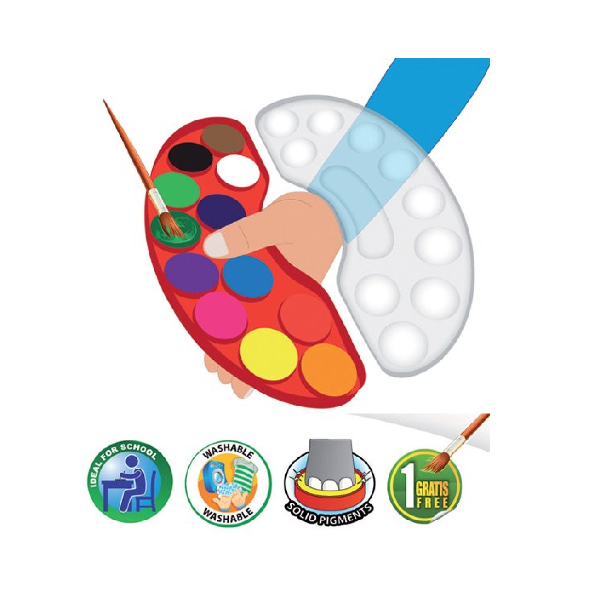 - unikátní design – obal lze uchopit jako malířskou paletu a plocha víčka umožňuje míchání jednotlivých barev