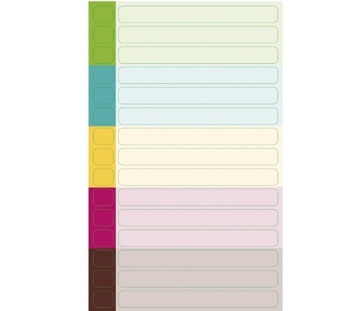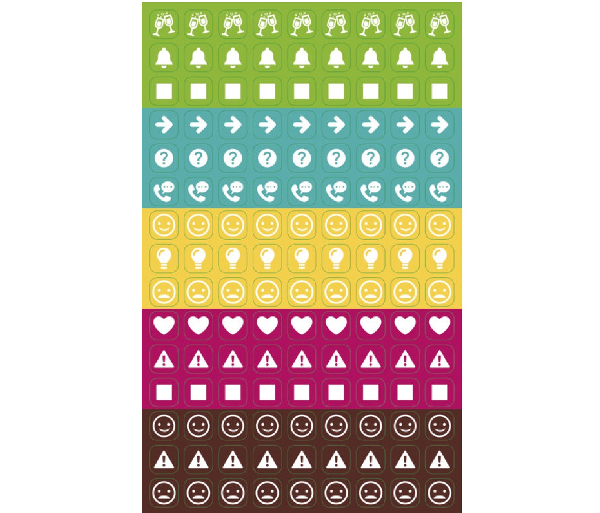 4 archy samolepek pro snadné rozvržení bloku, vytváření seznamů a nadpisů, pro zvýraznění bodů a událostí