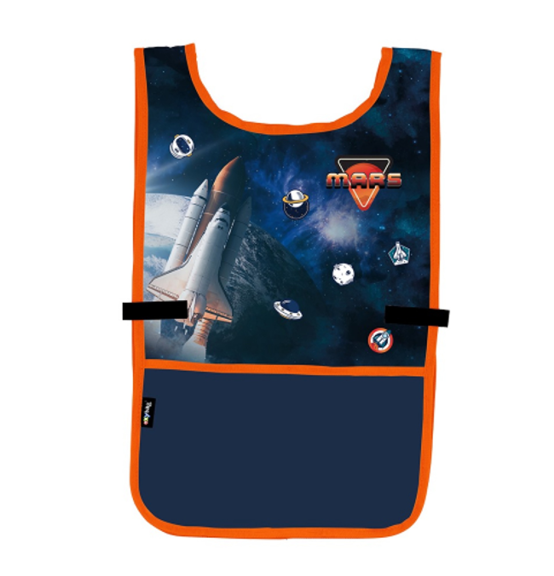 Popis:Zástěra na malování SpaceZástěra pončo do výtvarné výchovy či na jiné tvořící aktivity. Oblékání přes hlavu, po stranách zapínání na druk. Vpředu jedna prostorná kapsa. Materiál 100% polyester.