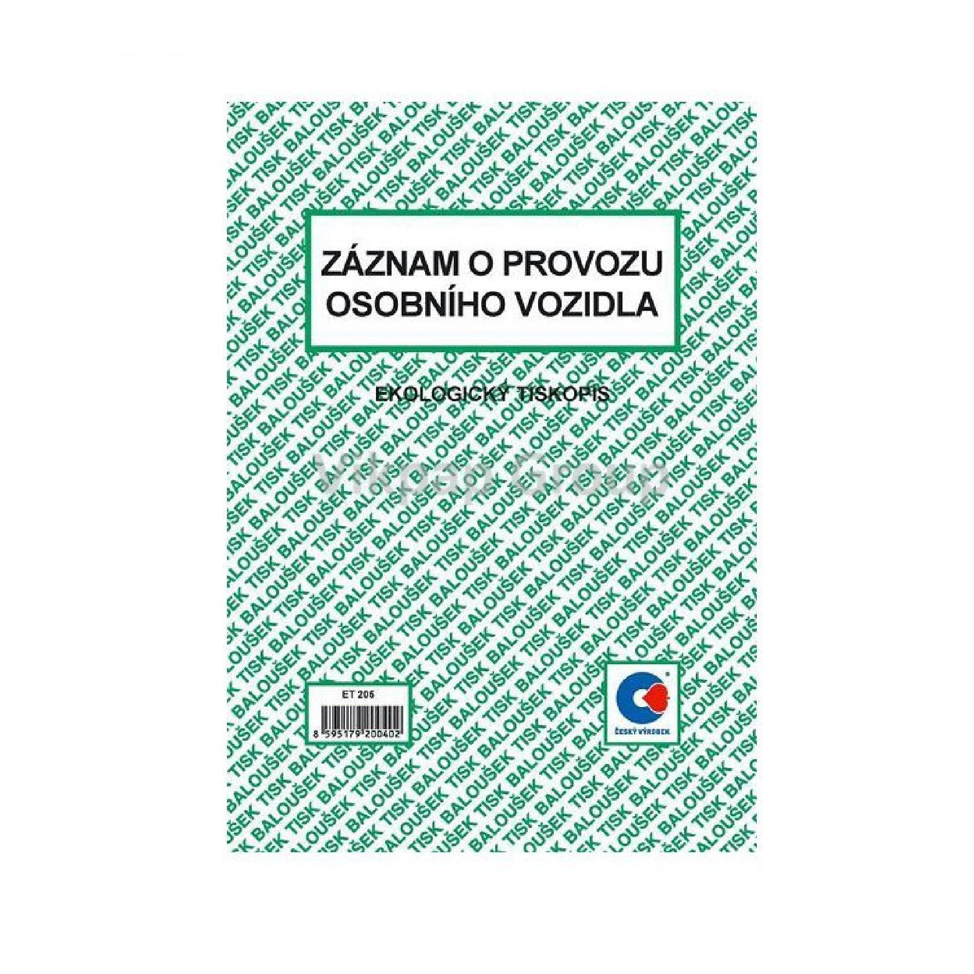 Popis:Záznam o provozu osobního vozidla (stazka), formát A5, ET205, 50 listů. Záznam o provozu osobního vozidla (stazka) A5 Baloušek ET205